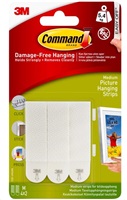 Jedna sada 4 proužků ve velikosti M udrží zátěž až 5,4 kg. Proužky 3M Command Picture Hanging Strips jsou vhodné nejen pro zavěšení obrazů, ale i dřevěných písmen, desek z akustické pěny, zrcadel, nástěnných hodin, tabulí pro suché mazání a mnoho dalšího.