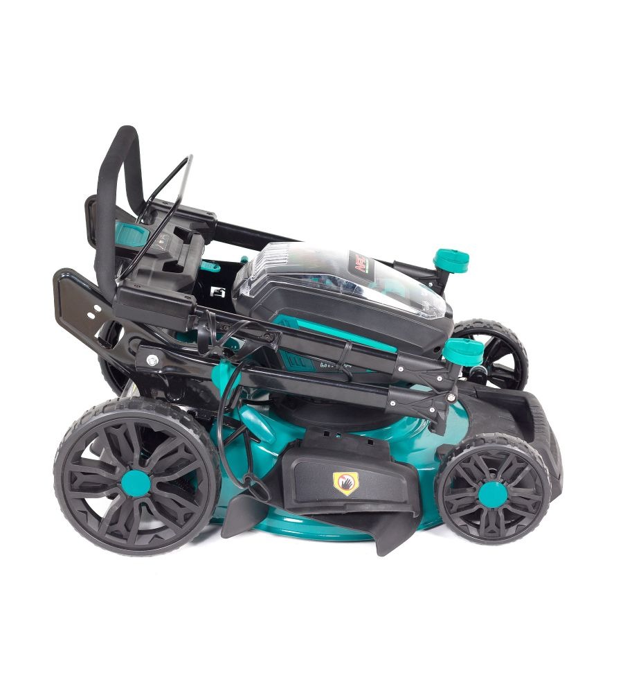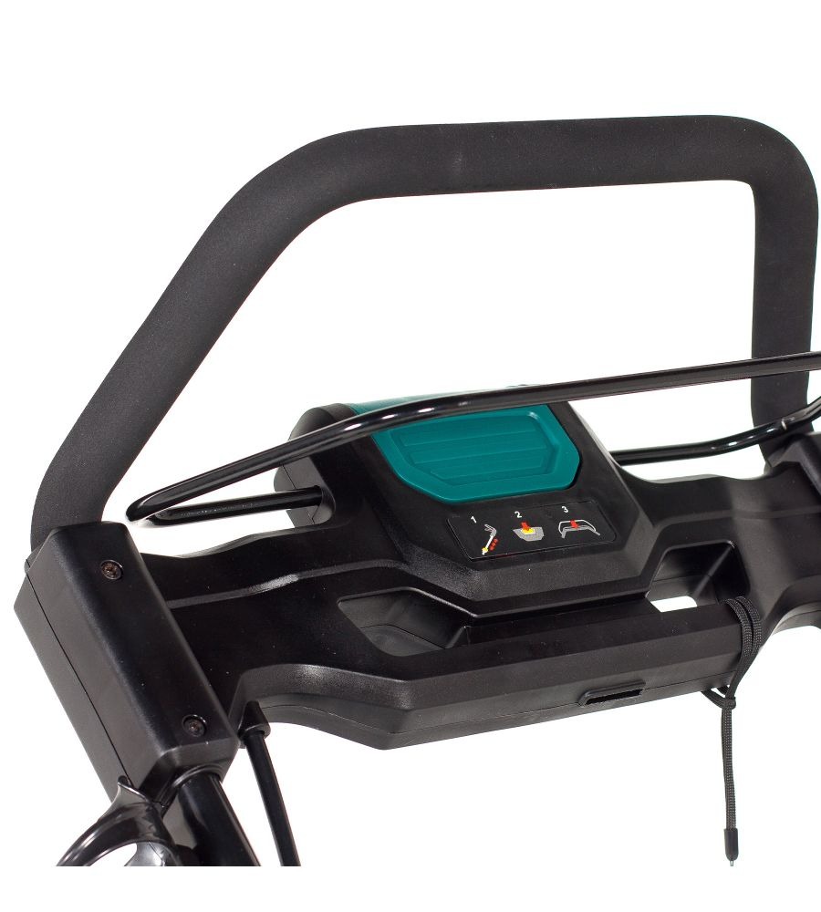 Velkou výhodou sekačky je její skladnost díky sklápěcím rukojetím. Na přední straně krytu najdete praktickou rukojeť, která vám usnadní a urychlí její zvedání nebo přenášení.