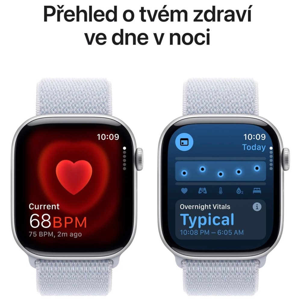 Telefony, navigace, vysílačky, wearables  Wearables, chytrá elektronika  Chytré hodinky  Apple Watch S10/42mm/Silver/Sport Band/Blue Cloud