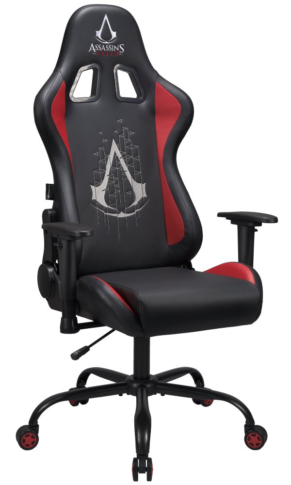 Stylová herní židle pro fanoušky série Assassin's Creed poskytuje dokonalou oporu a pohodlí i při dlouhém sezení u počítače. Je vyrobena z kvalitní syntetické kůže, která je příjemná na dotek, a navíc se snadno čistí. Židle disponuje úhlem sklonu až 135° a má výškově nastavitelné opěrky rukou s rotací. Pro celkové nastavení výšky židle je k dispozici plynový píst třídy 3, který vyniká dlouhou trvanlivostí. Nosnost židle je až 130 kg.