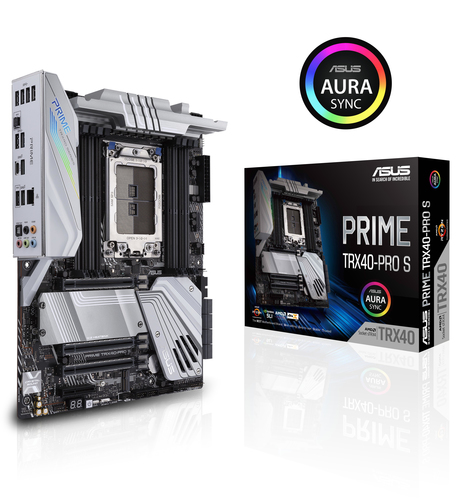 AMD TRX40 ATX motherboard sTRX4 for 3rd Gen Ryzen Threadripper-series processors (up to 64 cores) with 16 power stages, DDR4 4666+ MHz (O.C.), triple PCIe 4.0 M.2s, USB 3.2 Gen 2 Type-C front-panel connector and Aura Sync RGB lighting