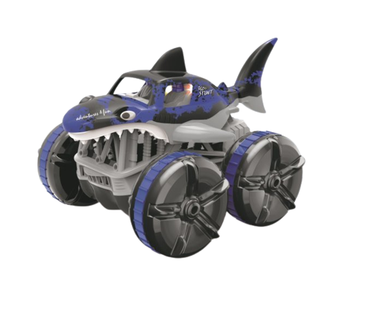 Udělejte radost svému synovi nebo dceři s obojživelným autíčkem ve tvaru žraloka od značky MAC TOYS. Auto děti ovládají pomocí dálkového ovládání. Vyhrají si s ním jak na zemi, tak na vodě. Díky velkým kolům zvládne hračka jezdit všemi směry a pojede i na neupraveném terénu na chalupě nebo během procházky. Jakmile se autíčko rozpohybuje, kabina se barevně rozsvítí a zůstane svítit v průběhu celé jízdy. Díky zadní ploutvi, která se ve vodě hýbe, připomíná plavajícího žralok.