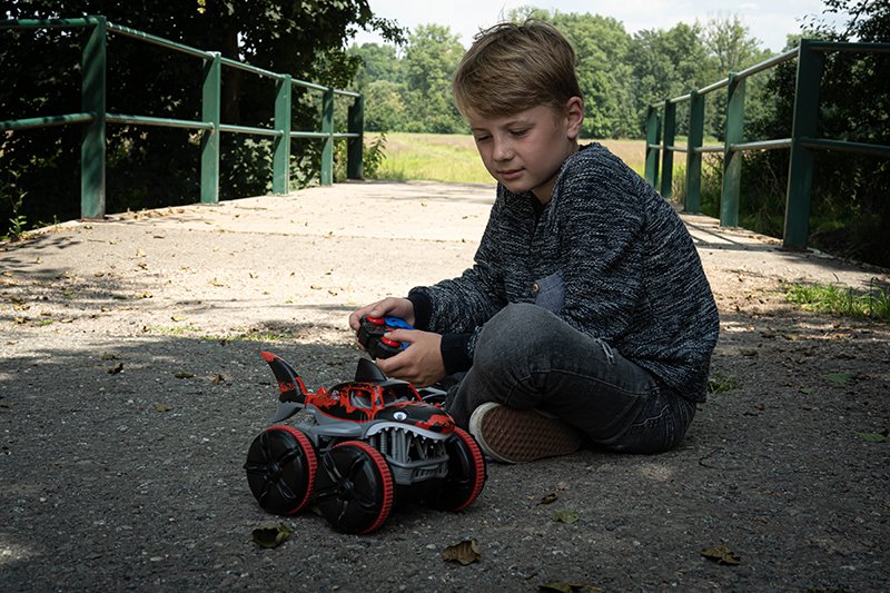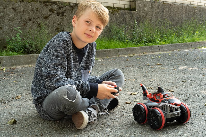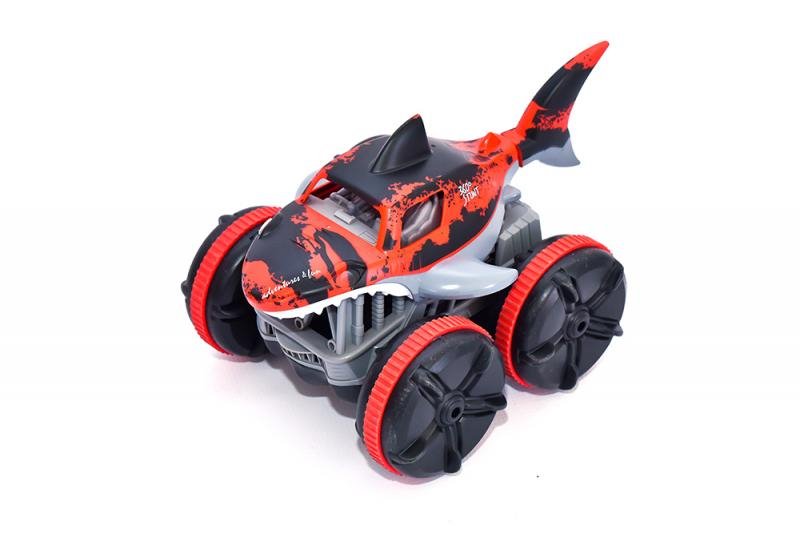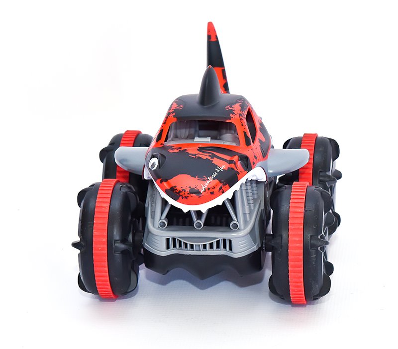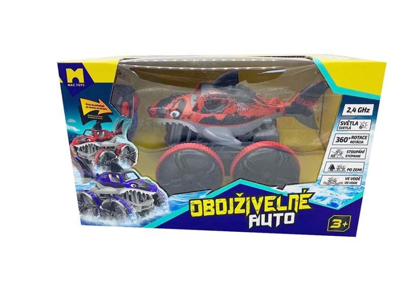 Udělejte radost svému synovi nebo dceři s obojživelným autíčkem ve tvaru žraloka od značky MAC TOYS. Auto děti ovládají pomocí dálkového ovládání. Vyhrají si s ním jak na zemi, tak na vodě. Díky velkým kolům zvládne hračka jezdit všemi směry a pojede i na neupraveném terénu na chalupě nebo během procházky. Jakmile se autíčko rozpohybuje, kabina se barevně rozsvítí a zůstane svítit v průběhu celé jízdy. Díky zadní ploutvi, která se ve vodě hýbe, vypadá, jako když plave žralok.
