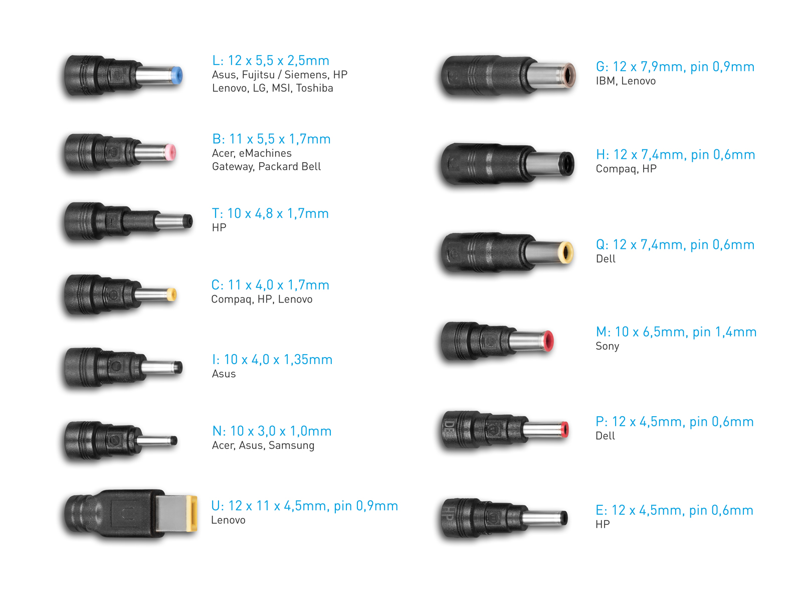 Kompatibita a rozměry konektorů pro notebooky