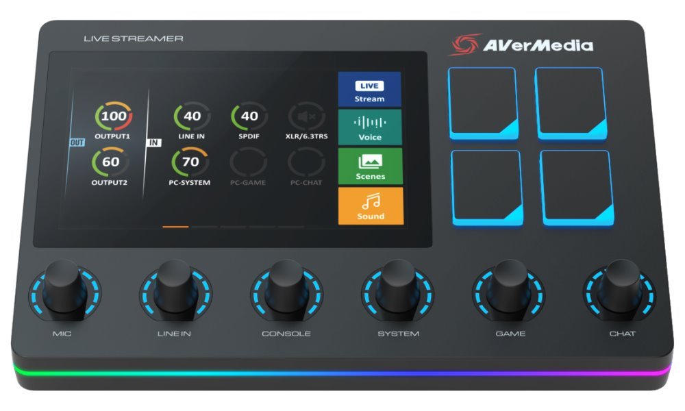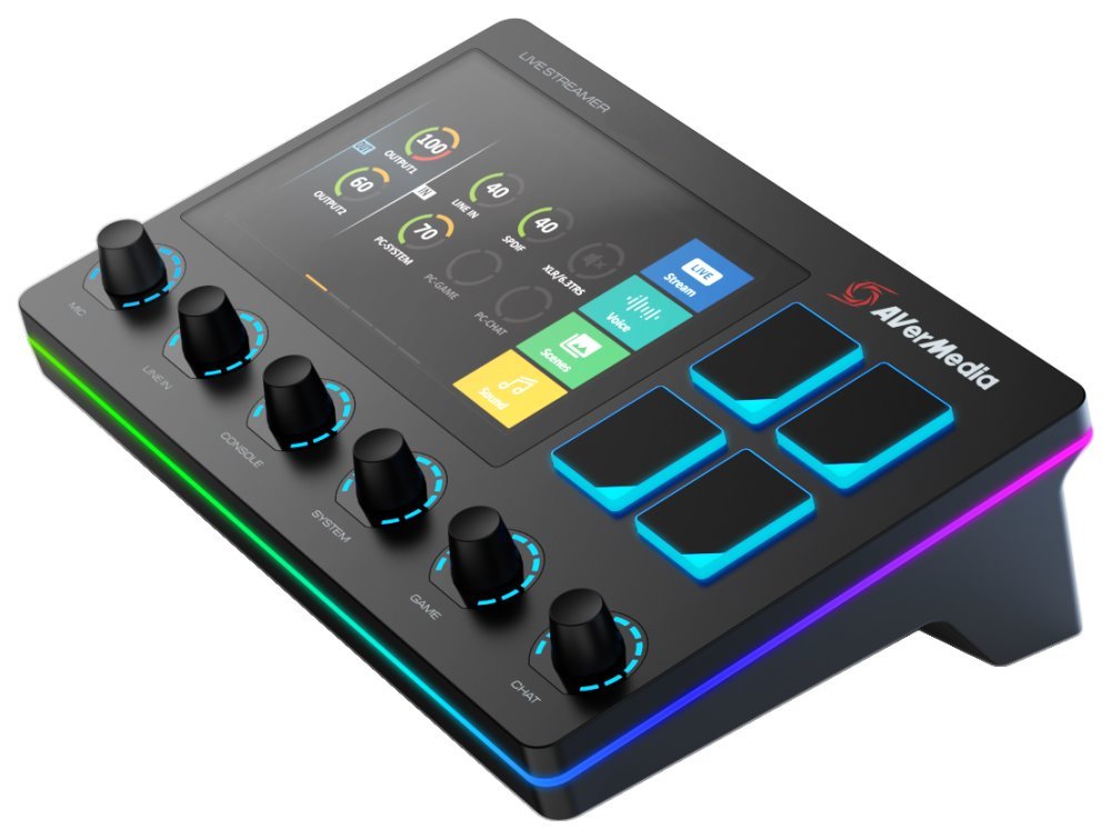 Ovládací panel zvuku určený zejména pro streamování, nahrávání podcastů či vytváření obsahu na YouTube. Pomocí šesti otočných tlačítek lze snadno ovládat úroveň hlasitosti jednotlivých zvukových kanálů. Panel je dále vybaven 5" dotykovým IPS displejem. Na displeji jsou zobrazeny aktuální informace o hlasitosti jednotlivých kanálů, náhledy aplikací a tlačítka rychlých akcí. Volba zobrazovaného obsahu včetně nastavení jasu a přizpůsobení obrazovky probíhá v aplikaci NEXUS. Ta mimo jiné umožňuje také nastavení akcí pro čtyři programovatelná tlačítka. Zajisté potěší stylové RGB podsvícení či podpora aplikací třetích stran, jako jsou OBS Studio, SLOBS, YouTube, Twitch nebo Spotify.