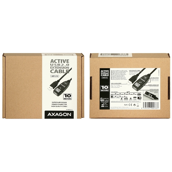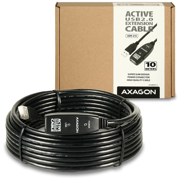 Aktivní prodlužovací USB 2.0 kabelAXAGON ADR-210délky 10 metrů.