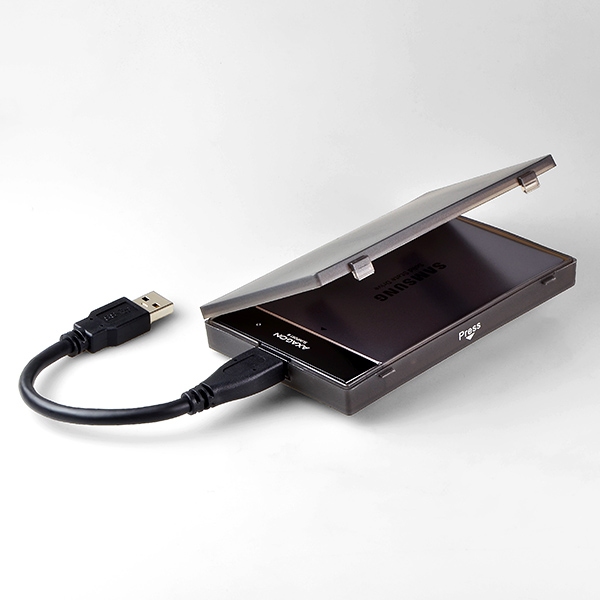 adaptéru bez disku včetně USB kabelu uvnitř pouzdra.