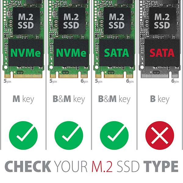 • Podpora M key nebo B+M key NVMe (PCI-Express) i SATA (AHCI) M.2