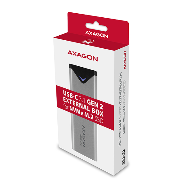 Super rychlý externí boxAXAGON EEM2-UG2s USB 3.2 Gen 2 rozhraním je určen proNVMe (PCI-Express) M.2 SSDdisky.