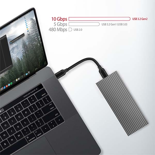 moderních M.2 SSD disků. Díky rychlému USB 3.2 Gen 2 rozhraní je