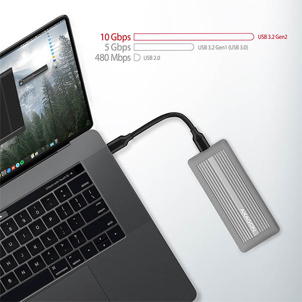 USB-C kabel. Externí M.2 box podporuje i další moderní funkce např.
