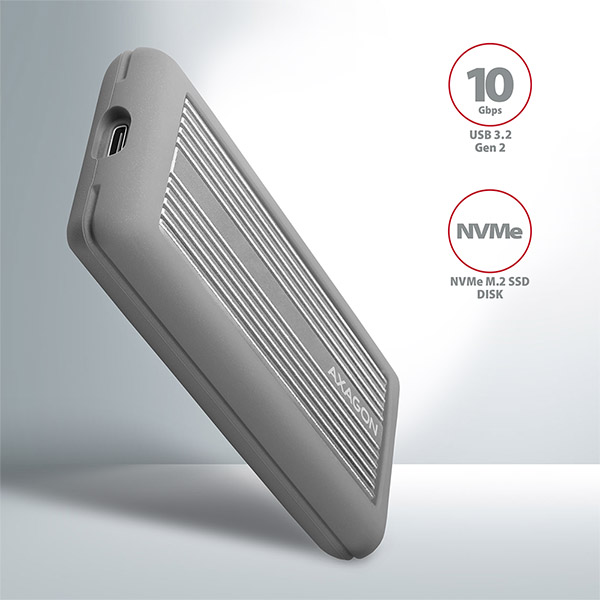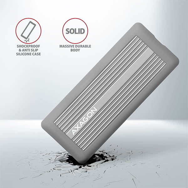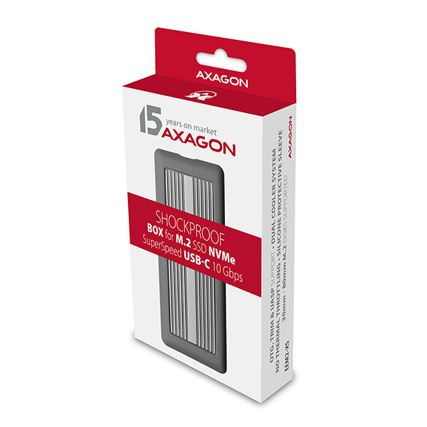 Super rychlý externí boxAXAGON EEM2-XS SHOKPROOFs USB 3.2 Gen 2 rozhraním je určen proNVMe (PCI-Express) M.2 SSDdisky. Velkou předností hliníkového boxu jedvojité chlazení disku, s kterým vložený disk pracuje při nejnižší možné teplotě.