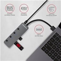 • V těle hubu integrovaný micro USB konektor pro přídavné napájení