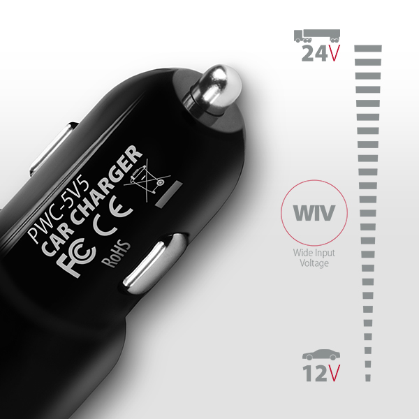 Duální USB nabíječka do autaAXAGON PWC-5V5pro nabíjení až dvou mobilních zařízení současně.