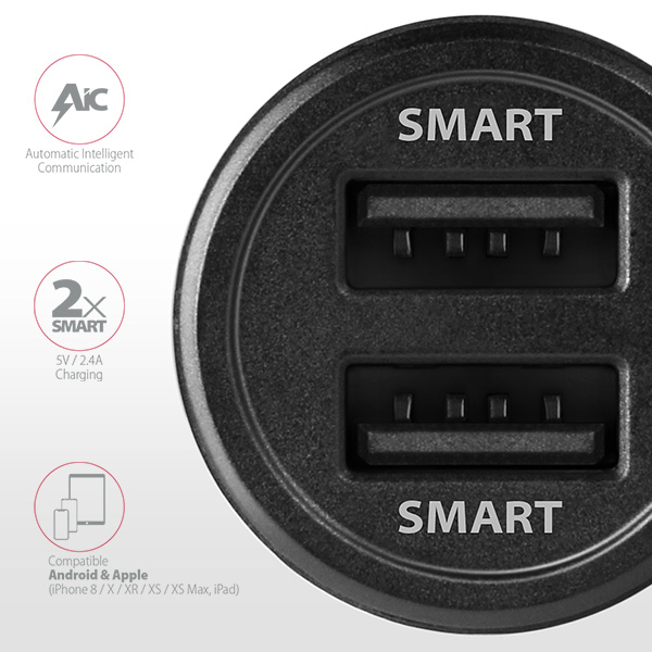 Dva USB výstupySMART 5V/2.4Aumožní nabíjení většiny mobilních zařízení.
