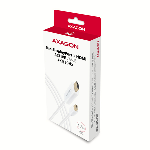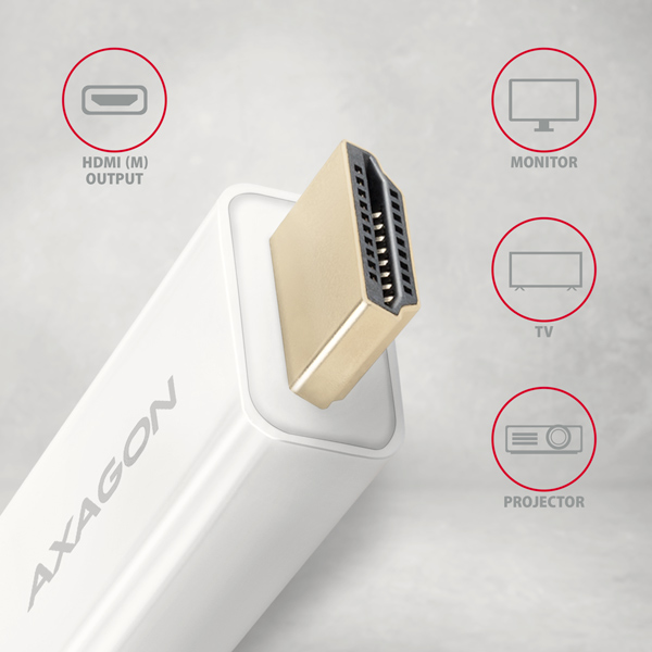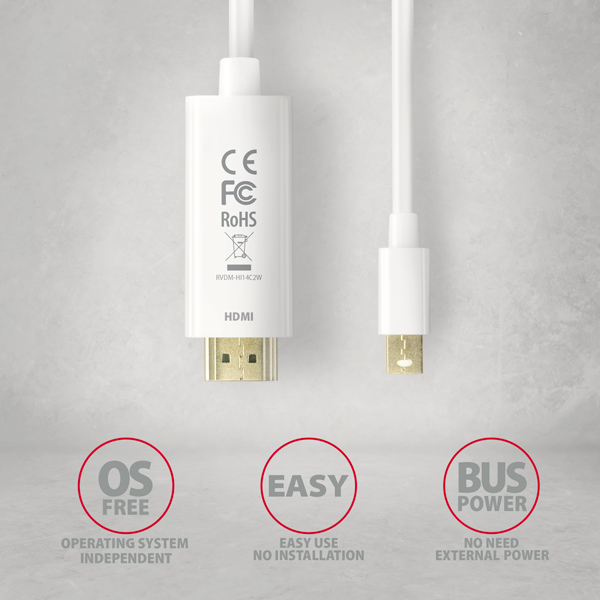 Mini DisplayPort -> HDMIaktivní kabel - redukceAXAGON RVDM-HI14C2Wpro připojení HDMI monitoru/TV/projektoru k počítači s výstupem