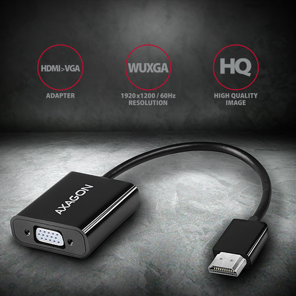 HDMI -> VGAaktivní adapterAXAGON RVH-VGANs audio výstupem pro připojení staršího VGA monitoru/TV/projektoru