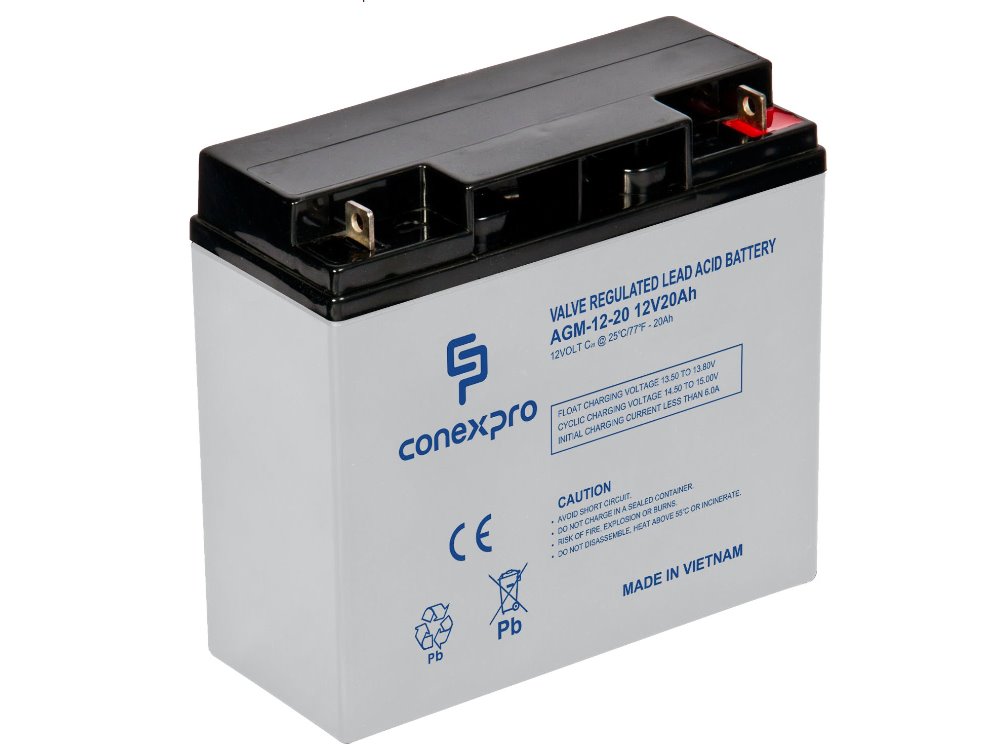 Hermeticky uzavřený olověný akumulátor Conexpro AGM-12-20 o kapacitě 20 Ah a napětí 12 V je vhodný pro zdroje nepřerušovaného napájení, požární, zabezpečovací, přístupové, telekomunikační a solární systémy i pro celou řadu dalších aplikací. Řadí se mezi bezúdržbové VRLA AGM baterie s elektrolytem, který je nasáklý v netkané tkanině ze skelných vláken. Tento model je tak odolný vůči otřesům a vytečení a práce v náklonu či jiné poloze mu nebude dělat žádné obtíže. Akumulátor má navíc výborné nabíjecí charakteristiky, nabízí lepší teplotní stabilitu, odolá cyklické zátěži (nabíjení a vybíjení) a dosahuje životnosti až 10 let, díky čemuž vám bude sloužit naprosto spolehlivě.
