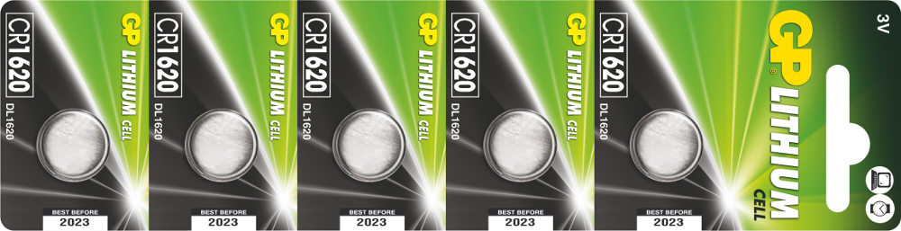 lithiová GP CR1620 (CR1620), 3V jmenovitá kapacita: 75 mAh (při zátěži 30 kOhm) rozměry: průměr 16,0 x 2,0 mm prodejní obal: 5 ks, blistr