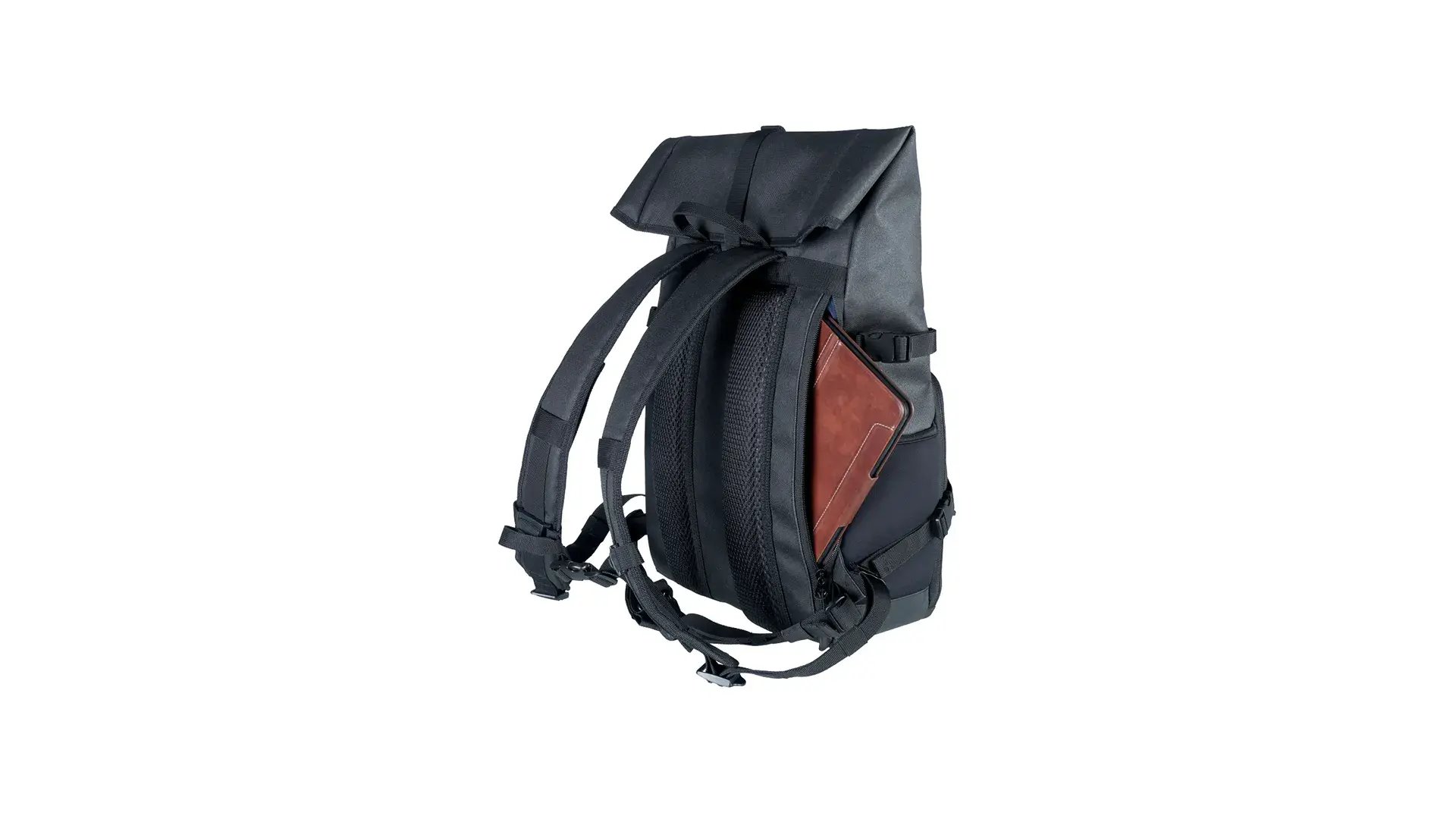 Horní část batohu můžete srolovat. To společně se zipovou kapsou na přední straně umožňuje rychlý přístup k vašim věcem. Vnitřní strana zipové kapsy obsahuje přihrádky na paměťové karty, dokumenty nebo jiné příslušenství. Nespadne úplně dolů, ale vějířovitě se rozkládá, takže při otevření nevypadnou žádné produkty.
