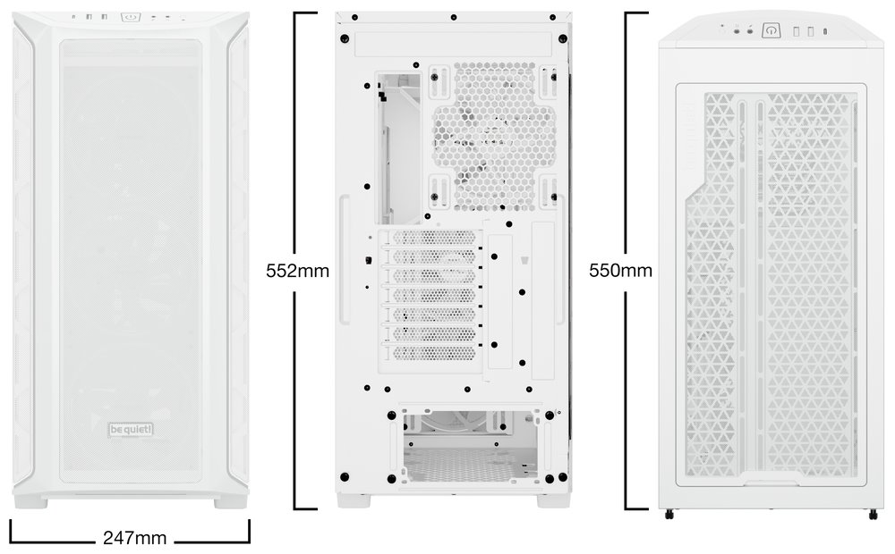 Skříň v provedení Middle Tower s průhlednou bočnicí a předním ARGB podsvícením nabízí dvě 3,5" pozice pro pevné disky a čtyři 2,5" pozice pro SSD disky. Na horním panelu naleznete dva porty USB 3.0, jeden port USB-C a dále také konektory pro sluchátka a mikrofon. Skříň je osazena čtyřmi ARGB ventilátory o velikosti 140 mm, a to v přední a zadní části, přesně tak, aby zaručily nejlepší průchod vzduchu. Ve skříni je dostatek prostoru pro chladič CPU do výšky až 180 mm a grafickou kartu o délce až 430 mm. Důmyslné řešení umožňuje pohodlné umístění až 420 mm dlouhého výměníku vodního chlazení na přední a vrchní straně. Potěší taktéž lišta pro lepší organizaci kabelů, dvojice prachových filtrů či integrovaný PWM/ARGB rozbočovač. Skříň je dodávána bez zdroje.