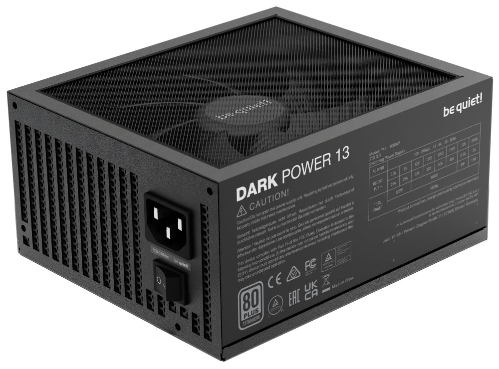 Napájecí zdroj o výkonu 1000 W je osazen tichým a přitom výkonným 135 mm ventilátorem. Zdroj splňuje certifikaci 80PLUS Titanium a má plně odpojitelné kabely.