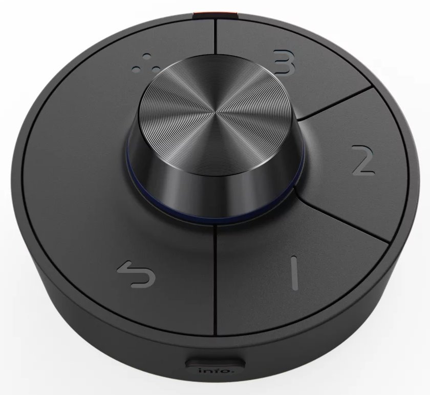Součástí balení jsou kabely DisplayPort, USB-C, HDMI, stínící kryt (pouze pro orientaci na šířku) a dálkový ovladač Hotkey Puck G3, který slouží k rychlému přepínání nastavitelných módů obrazu bez nutnosti vstupu do menu. Kromě několika funkčních tlačítek obsahuje tento ovladač také otočné kolečko, které umožňuje rychlou úpravu jasu, kontrastu nebo hlasitosti.