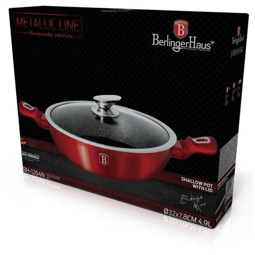 BERLINGER Kastrol s mramorovým povrchem 32 cm Metalic Line Burgundy Edition + poklice, BH-1264N