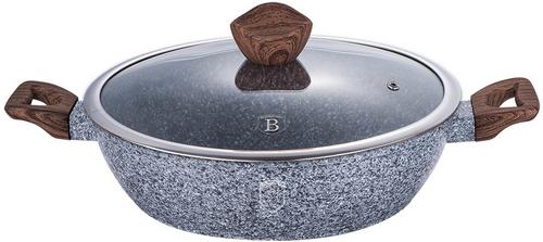 Mělký kastrol s poklicí 32 cm s mramorovým povrchem. Materiál: