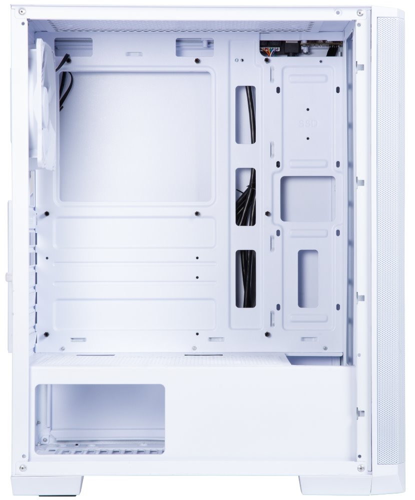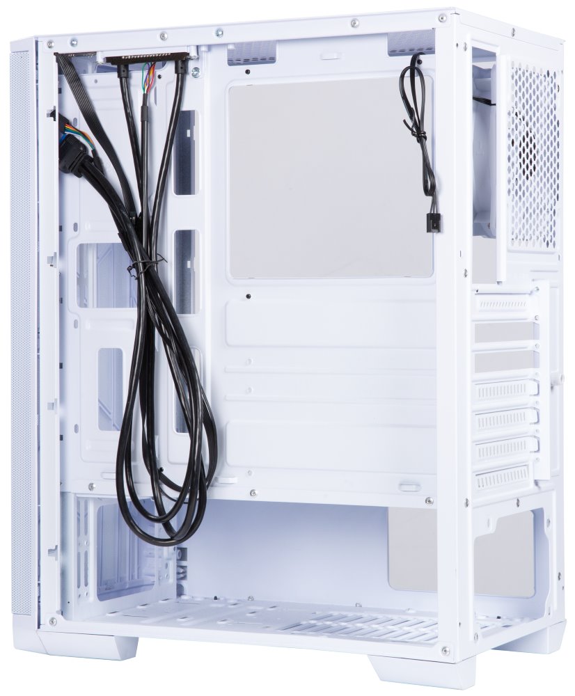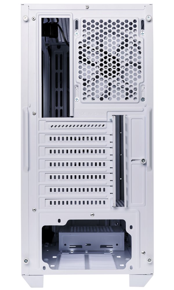 Moderní počítačová skříň s průhlednou bočnicí z tvrzeného skla. Formát Mini Tower nabízí dostatek prostoru pro uložení až čtyř disků. Na horním panelu se nachází dva USB 3.0 porty, sluchátkový výstup a audio vstup pro mikrofon. Skříň je vybavena 120 mm ventilátorem na zadní straně a umožňuje pohodlné umístění až 360 mm dlouhého výměníku vodního chlazení na přední straně. Ve skříni je dostatek prostoru pro chladič CPU do výšky až 160 mm a grafickou kartu o délce až 315 mm. Skříň je dodávána bez zdroje. Součástí je také odnímatelný prachový filtr.