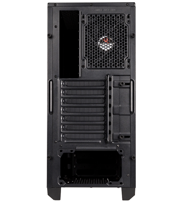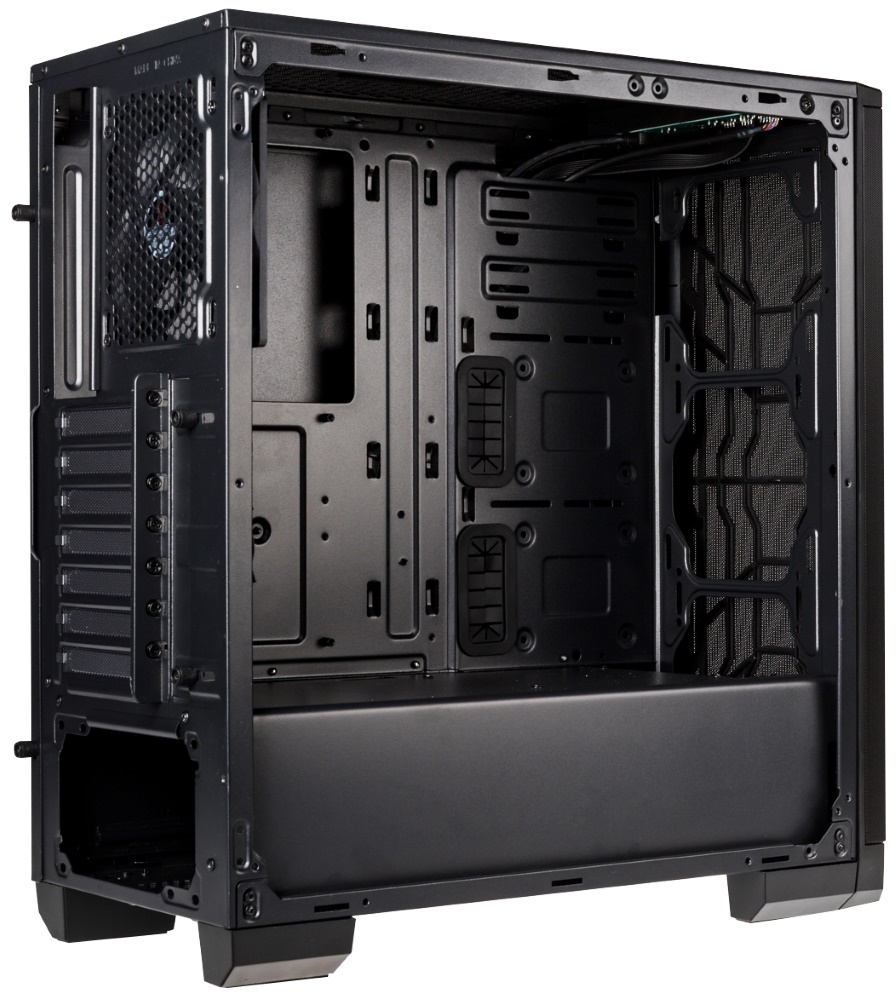 Skříň formátu Middle Tower nabízí tři 2,5" pozice pro SSD disky a dvě 3,5" pozice pro pevné disky. Na horním panelu se nachází dva USB 3.0 porty, sluchátkový výstup a audio vstup pro mikrofon. Skříň je vybavena jedním 120 mm ventilátorem na zadní straně. Důmyslné řešení umožňuje pohodlné umístění až 360 mm dlouhého výměníku vodního chlazení na přední straně. Ve skříni je dostatek prostoru pro chladič CPU do výšky až 160 mm a grafickou kartu o délce 340 mm. Skříň je dodávána bez zdroje. Součástí skříně je také prachový filtr.