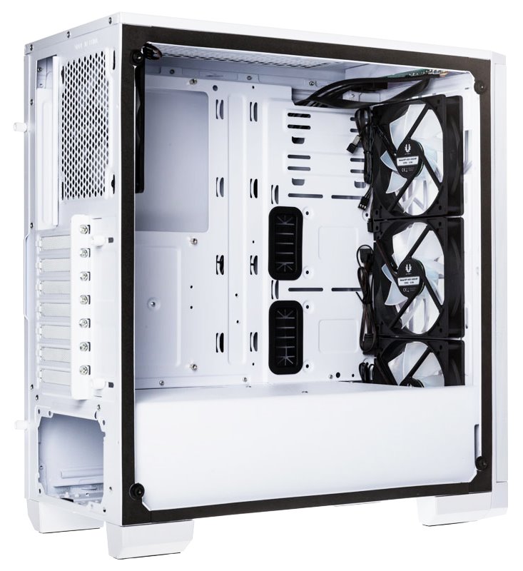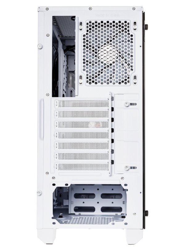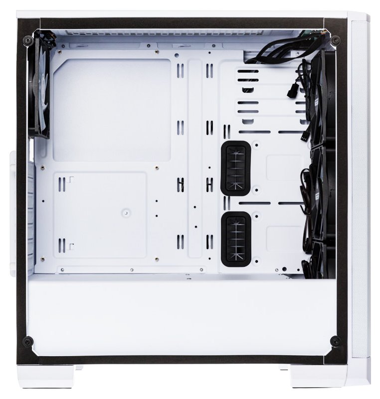 Skříň formátu Middle Tower nabízí tři 2,5" pozice pro SSD disky a dvě 3,5" pozice pro pevné disky. Na horním panelu se nachází dva USB 3.0 porty, sluchátkový výstup a audio vstup pro mikrofon. Skříň je vybavena čtyřmi 120 mm ventilátory disponujícími ARGB podsvícením a spolu s průhlednou bočnicí zajišťují vytříbený design. Důmyslné řešení umožňuje pohodlné umístění až 360 mm dlouhého výměníku vodního chlazení na přední straně. Ve skříni je dostatek prostoru pro chladič CPU do výšky až 160 mm a grafickou kartu o délce 340 mm. Skříň je dodávána bez zdroje. Součástí skříně je také sada prachových filtrů.