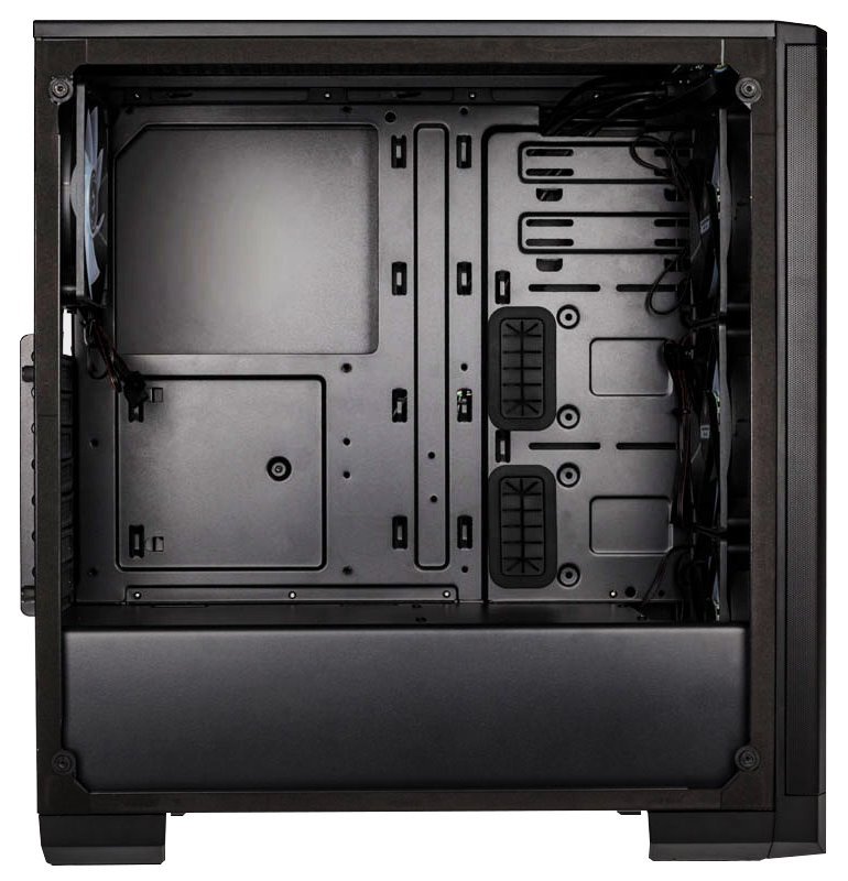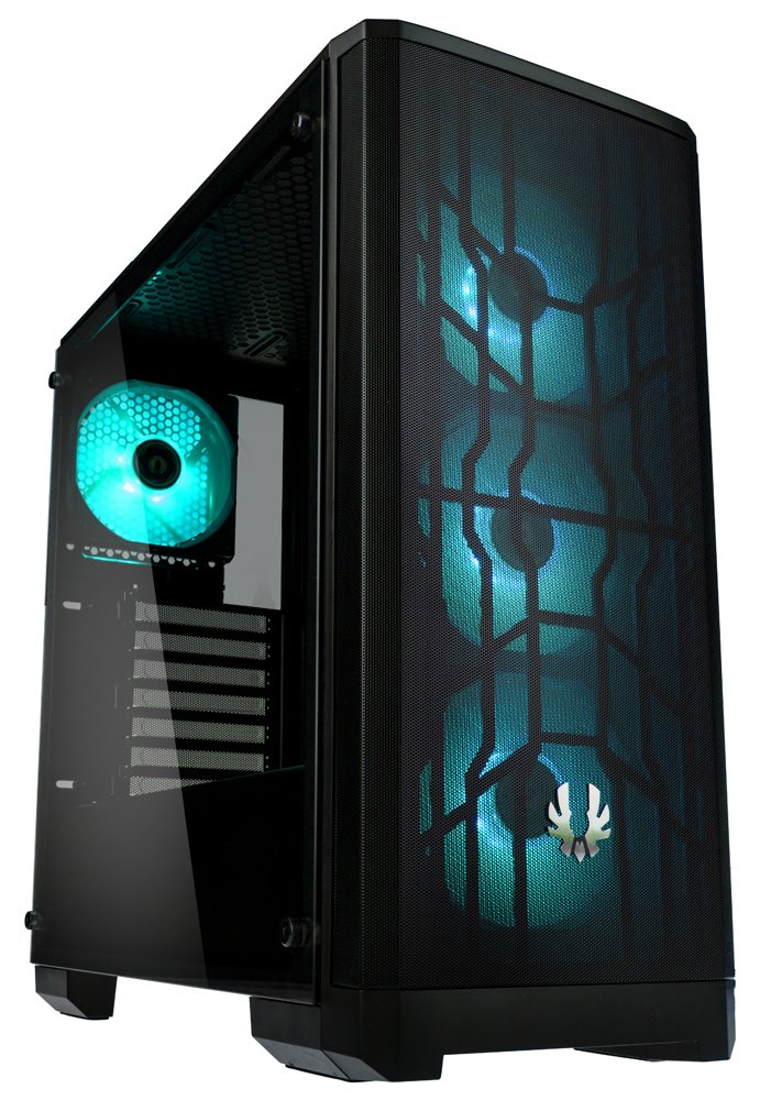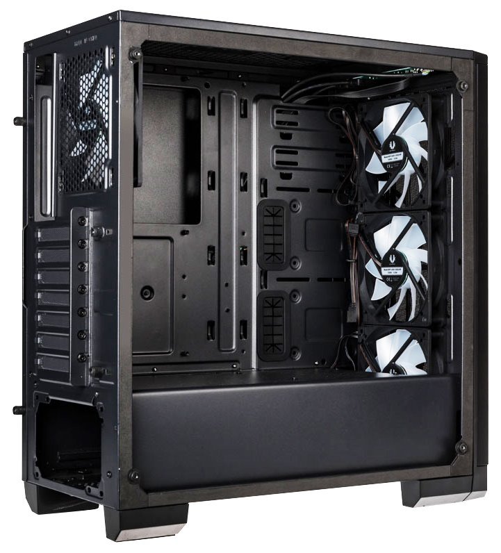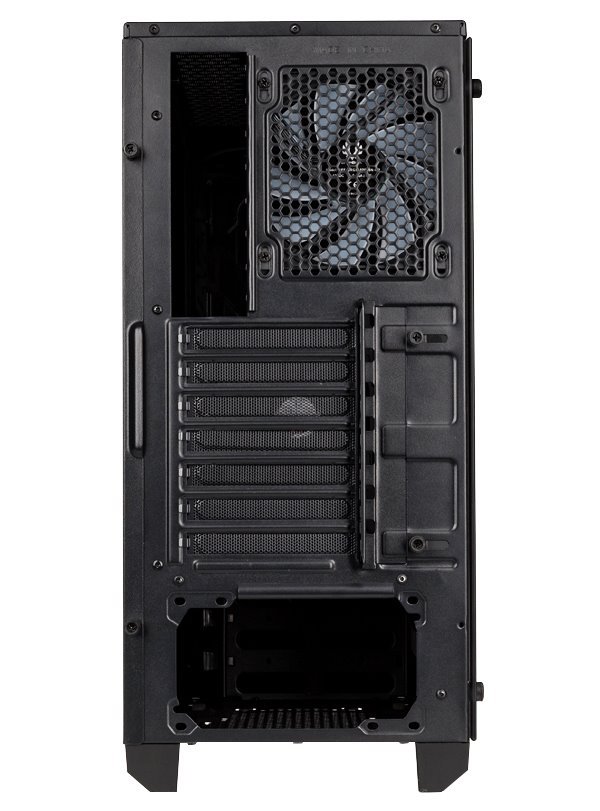 Skříň formátu Middle Tower nabízí tři 2,5" pozice pro SSD disky a dvě 3,5" pozice pro pevné disky. Na horním panelu se nachází dva USB 3.0 porty, sluchátkový výstup a audio vstup pro mikrofon. Skříň je vybavena čtyřmi 120 mm ventilátory disponujícími RGB podsvícením, které spolu s průhlednou bočnicí zajišťují vytříbený design. Důmyslné řešení umožňuje pohodlné umístění až 360 mm dlouhého výměníku vodního chlazení na přední straně. Ve skříni je dostatek prostoru pro chladič CPU do výšky až 160 mm a grafickou kartu o délce 340 mm. Skříň je dodávána bez zdroje. Součástí skříně je také sada prachových filtrů.
