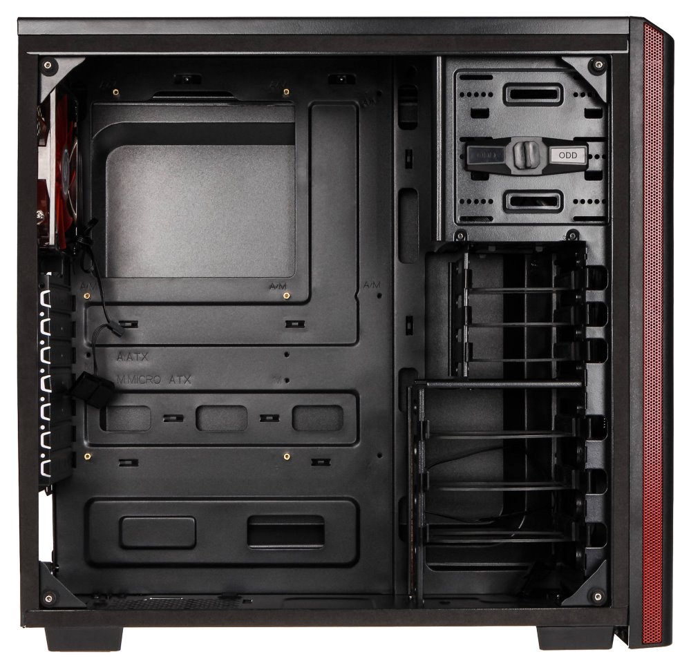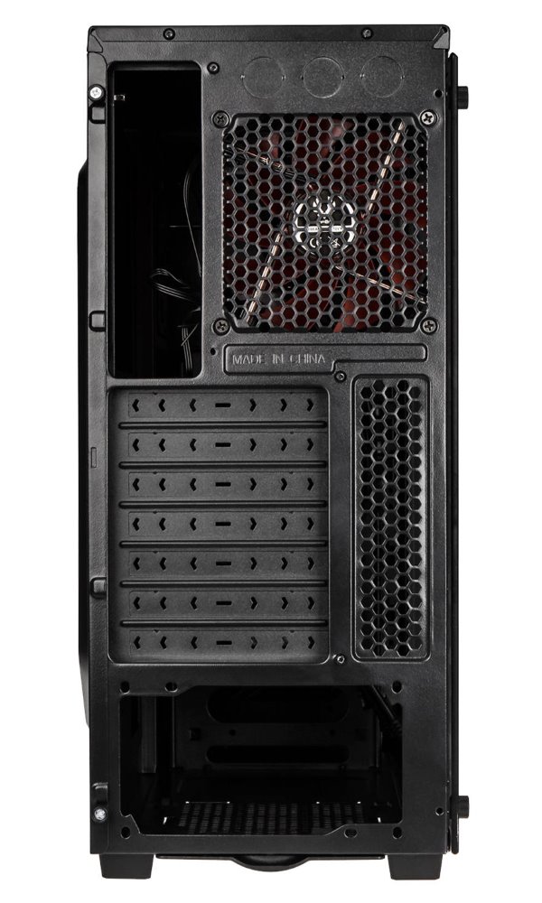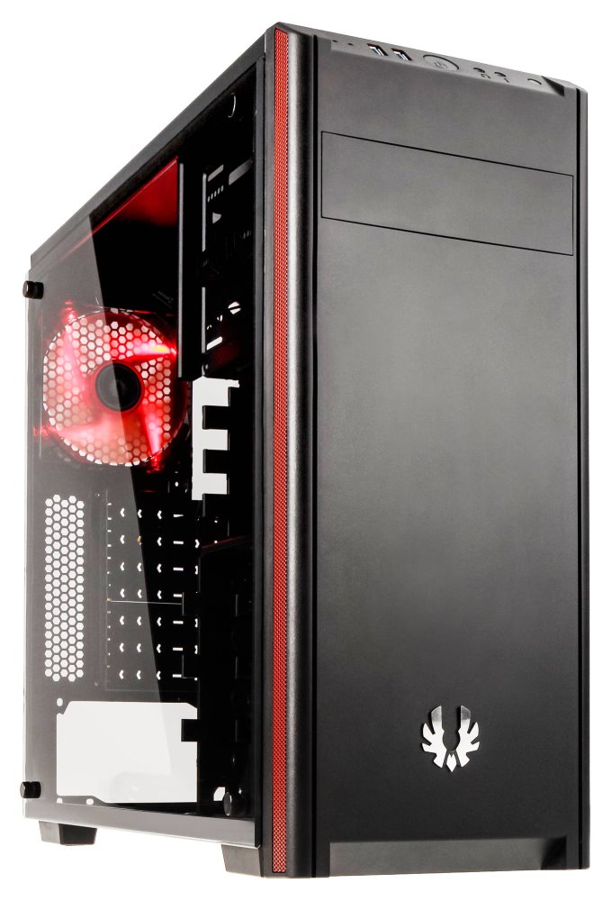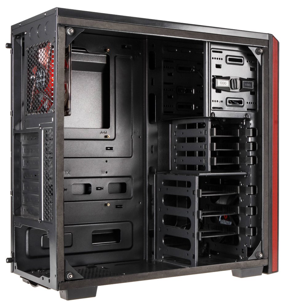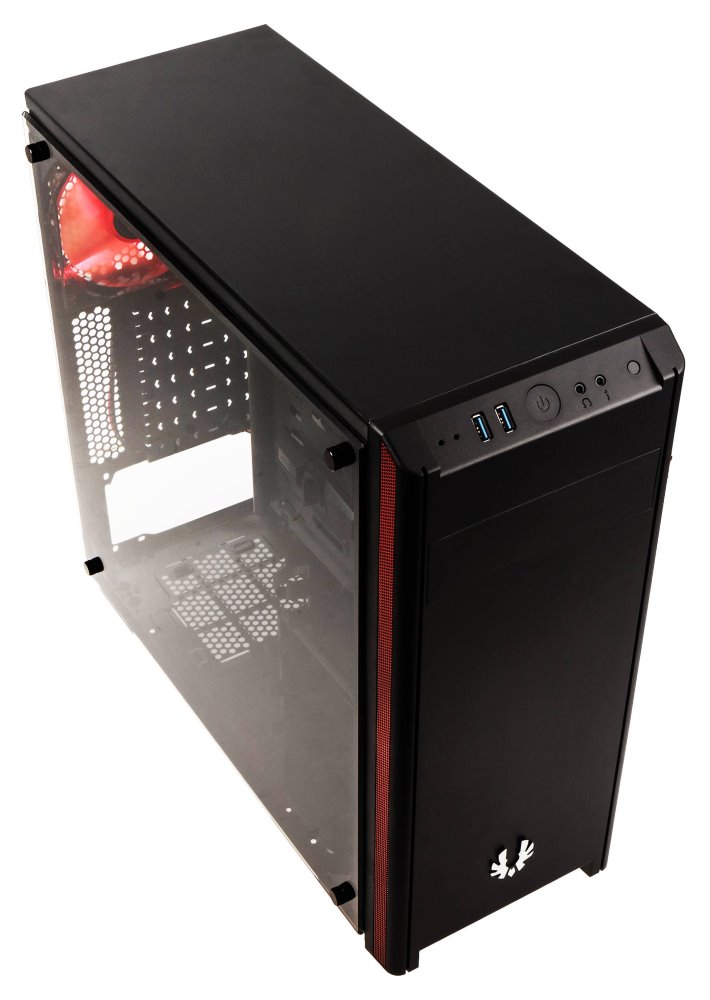 Moderní počítačová skříň s průhlednou bočnicí z temperovaného skla. Formát Middle Tower nabízí dostatek prostoru pro uložení až šesti disků, základní desky do velikosti ATX a až tří ventilátorů. Předinstalovány jsou dva 120 mm ventilátory, z toho jeden s červeným LED podsvícením. Na horním panelu se nachází dva porty USB 3.0, sluchátkový výstup a audio vstup pro mikrofon. Ve skříni je dostatek prostoru pro chladič CPU do výšky až 160 mm a grafickou kartu o délce až 290 mm. Skříň je dodávána bez zdroje. Součástí skříně je také sada prachových filtrů.