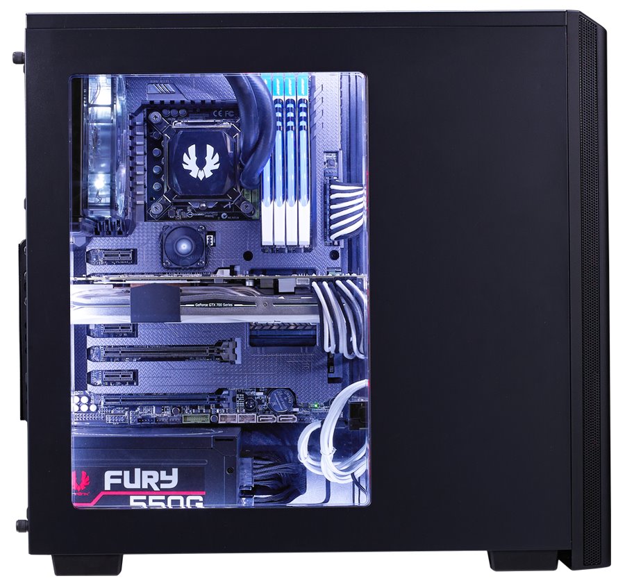 Skříň formátu Middle Tower s průhlednou bočnicí nabízí dvě 2,5" pozice pro SSD disky a čtyři 3,5" pozice pro pevné disky. Na horním panelu se nachází jeden USB 3.0 port, jeden USB 2.0 port, sluchátkový výstup a audio vstup pro mikrofon. Skříň je vybavena jedním 120 mm ventilátorem na zadní straně a podporuje přidání dalších dvou 120 mm velkých ventilátorů na přední stranu. Důmyslné řešení umožňuje pohodlné umístění až 120 mm dlouhého výměníku vodního chlazení na zadní straně. Ve skříni je dostatek prostoru pro chladič CPU do výšky až 160 mm a grafickou kartu o délce 320 mm. Skříň je dodávána bez zdroje. Součástí skříně je také prachový filtr.