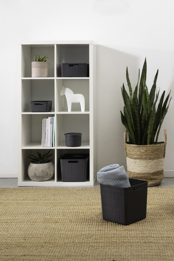 Tento stylový a praktický box se vyrábí ze 100% recyklovaného plastu. Je tedy šetrnější k životnímu prostředí. Jeho provedení připomíná tkaninu a perfektně zapadne do každého prostředí. Doplní vybavení kuchyně, obývacího pokoje, ložnice a klidně i koupelny.