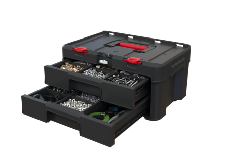 Box Keter Stack’N’Roll využijete pro uskladnění pracovních pomůcek. Uschovejte v něm šroubky, matice, vruty, hřebíky a další podobné náčiní. Vnitřní prostor tvoří 2 zásuvky, které zcela vysunete, abyste měli vždy přehled o uložených věcech. Velikost přihrádek si kdykoliv přizpůsobíte pomocí vyjímatelných rozdělovačů. Dílenské potřeby snadno najdete a máte je po ruce, kdykoliv potřebujete.