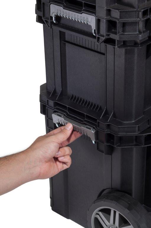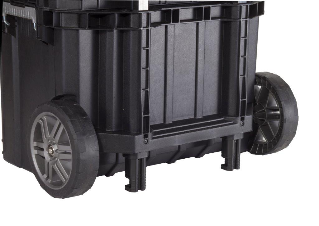 Odolné západky zajistí pevné uzavření boxu. Jeho obsah se vám tedy nevysype a zůstane v bezpečí. Madlo a kolečka vám navíc zjednoduší jeho přemisťování a manipulaci.
