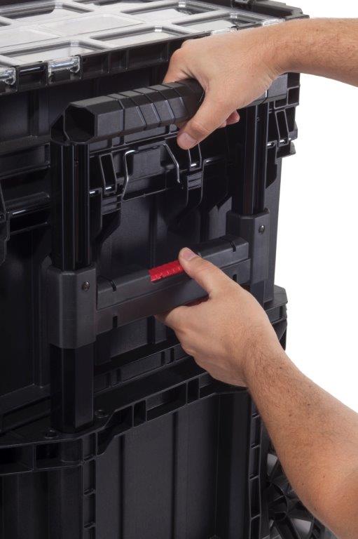 Nářadí si bezpečně uložíte do vnitřní části boxu nebo přímo do vozíku. Kromě toho jistě naplníte také organizér. Ten uchytíte na horní část boxu nebo ho použijete samostatně. Organizér je navíc vybavený vyjímatelnými přihrádkami, do kterých uskladníte drobné součástky. Díky průhlednému víku získáte dokonalý přehled o uložených předmětech.