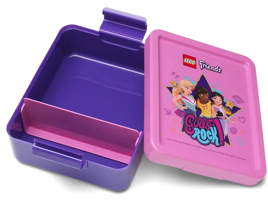 Připravte svému dítěti svačinu do školy a uložte ji do praktického boxíku s motivy LEGO FRIENDS. Tento svačinový box získáte společně s láhví na pití o objemu 390 ml. Váš potomek dodržuje pitný režim, i když tráví čas ve škole nebo s kamarády na hřišti. Vždy bude mít jak zahnat žízeň. Láhev skvěle padne do dětské ruky a dobře se drží. Navíc se snadno otevírá pomocí bezpečného uzávěru. Obrázek s námětem LEGO FRIENDS funguje jako krásná ozdoba a určitě potěší každé dítě.