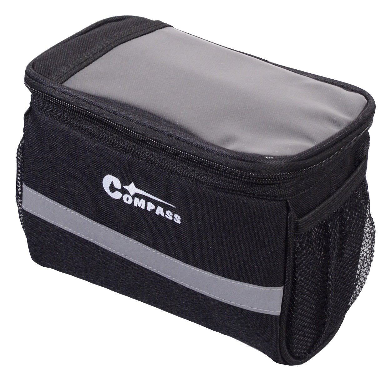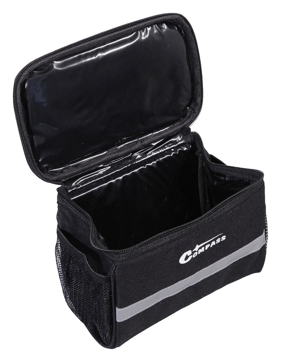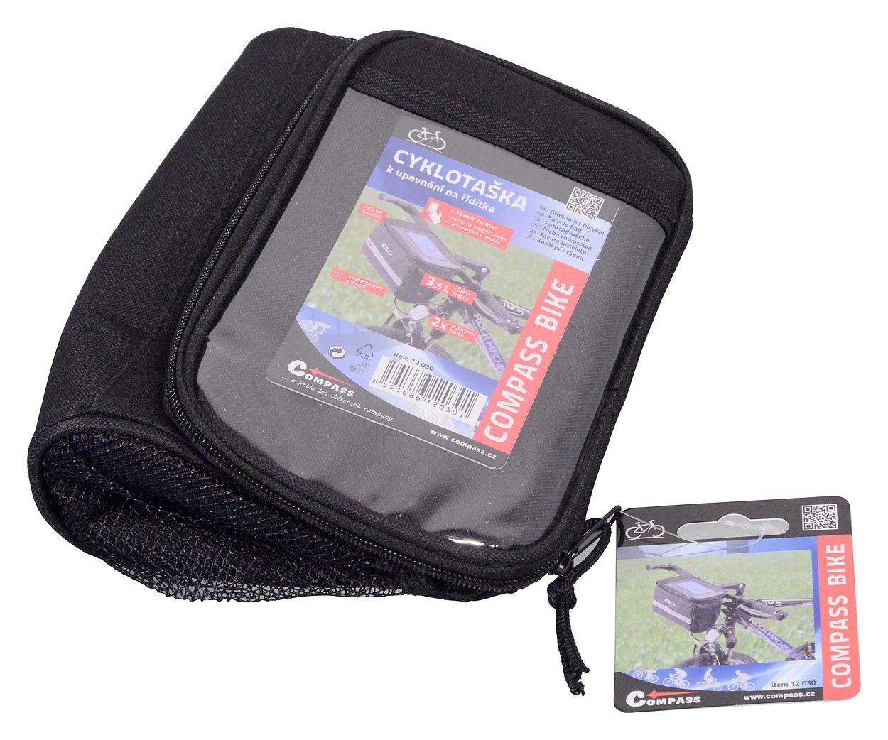 Cyklobrašna Compass Bike 12030 nabízí bohatý vnitřní objem 3,5 l a slouží pro uchycení před řídítka horských i silničních kol pomocí pevných pásků se suchým zipem. Je vyrobena z vodoodpudivého materiálu, tudíž bude veškerý obsah uvnitř spolehlivě chráněn vůči dešti a dalším rozmarům počasí. Reflexní prvky zase zajistí zvýšenou viditelnost ve dne v noci, aby se vám na vaší cestě nepřihodilo nic zlého.