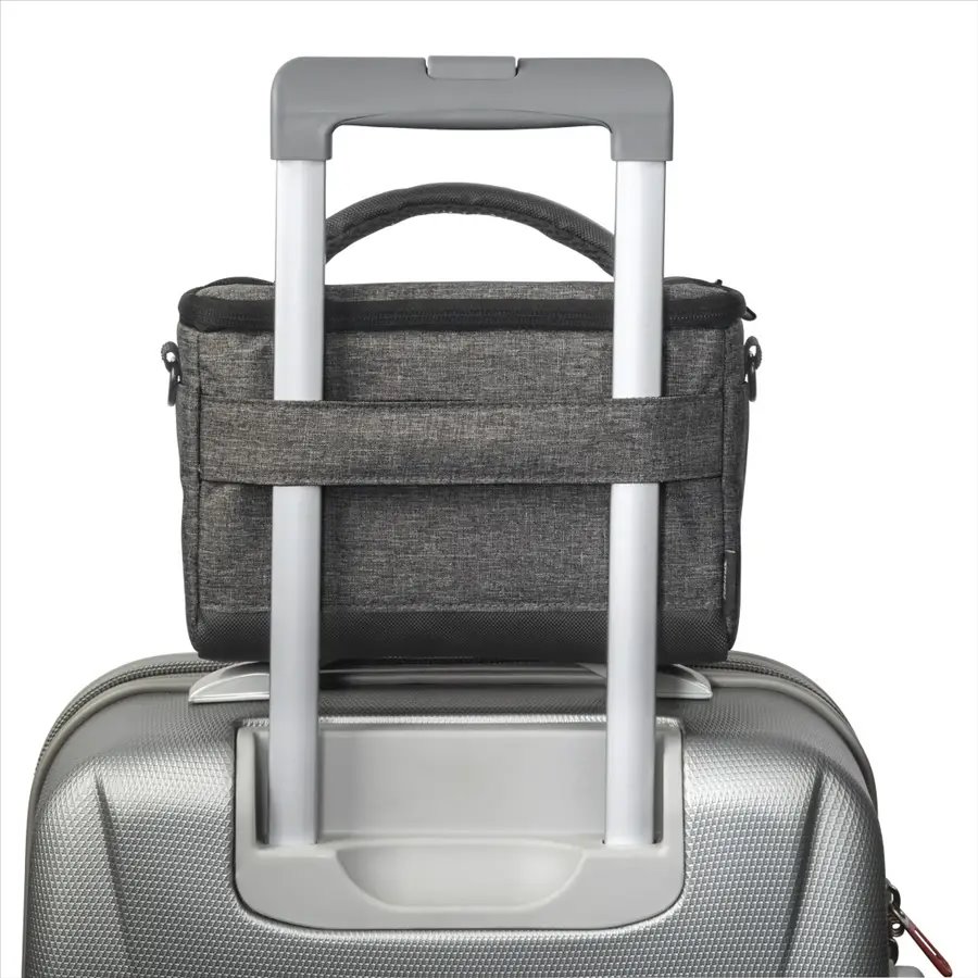 Odnímatelný popruh přes rameno je nastavitelný a vybavený polstrovanou ramenní podložkou. Zajišťuje vám tedy komfort během manipulace s brašnou. Pokud ji nechcete nosit na rameni, pomocí poutka si ji můžete připnout k opasku, zachytit ji ke kufru nebo ji chytit za polstrovanou rukojeť v horní části.
