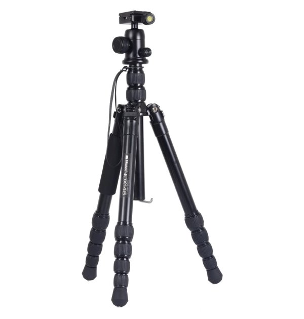 Profesionální hliníkový stativ s nosností až 8 kg a nastavitelnou výškou v rozmezí od 51 do 145 centimetrů. Je vybaven panoramatickou kulovou hlavou s výměnnou destičkou s 1/4" a 3/8" závitem, nastavitelným třením a dvěma vodováhami pro přesné zaměření. Nohy s otočným zámkem se skládají z pěti segmentů a jsou otočné v úhlu 180° pro minimální výšku sklopení. Středový sloupek lze také otočit o 180°, což oceníte zejména při pořizování makro snímků. Navíc jsou vybaveny gumovými nožičkami a nastavitelnými hroty. Součástí balení je praktická brašna.