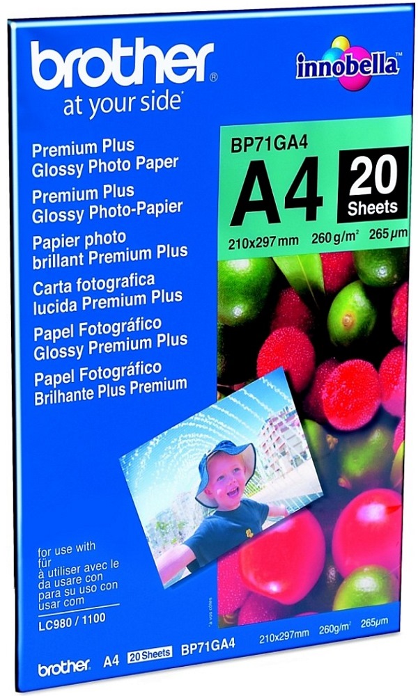 Brother Premium Glossy Photo - papír pro vysoce kvalitní a trvanlivý fotografický tisk lesklých fotografií. formát A4 260g/m2 balení 20ks lesklý povrch, jednostranný BROTHER fotopapíry Innobella jsou určené pro vysoce kvalitní a trvanlivý fotografický tisk, speciálně do tiskáren Brother s cartridgemi technologie Innobella.