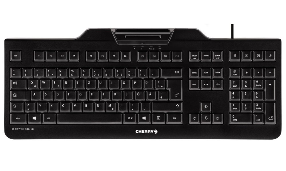 Klávesnice vybavená integrovanou čtečkou karet formátu ISO 7816. Připojení klávesnice přes USB kabel délky 1,8 m.