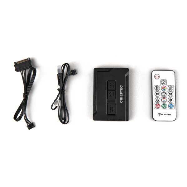 Součástí balení je ARGB rozbočovač a dálkové ovládání.