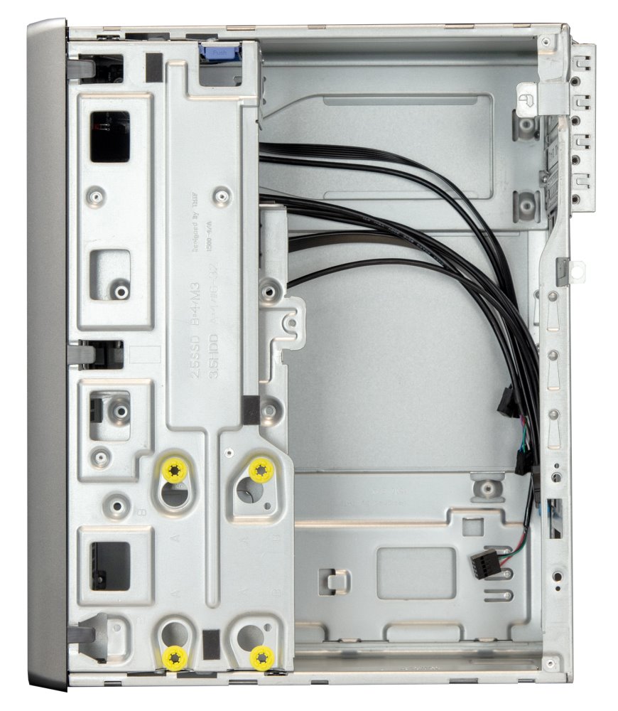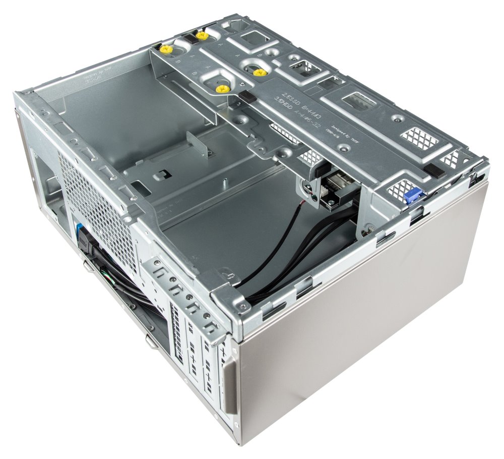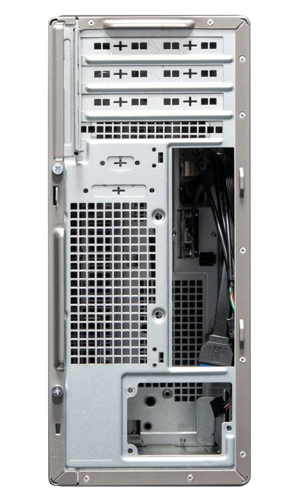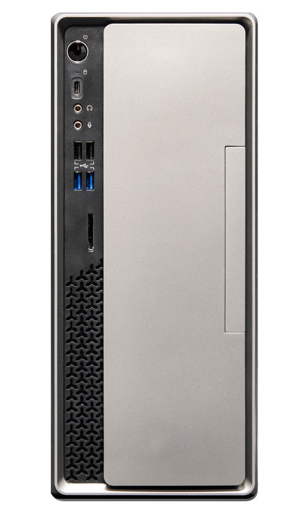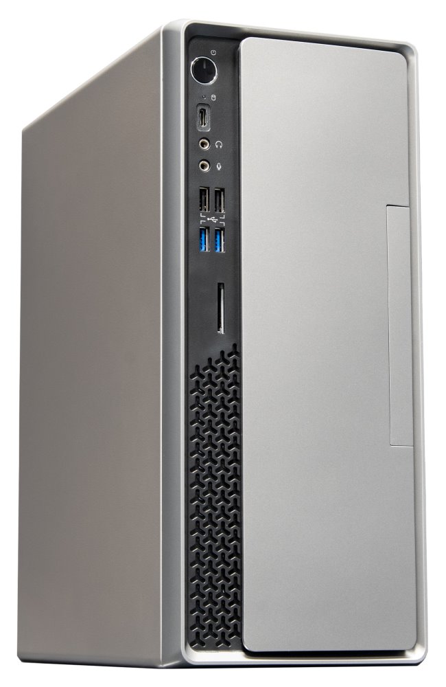 Skříň formátu Mini Tower nabízí dvě 2,5" pozice pro SSD disky a jednu 3,5" pozici pro pevný disk. Na předním panelu se nachází dva USB 3.0 porty, dva USB 2.0 porty, jeden port USB typu C, sluchátkový výstup a audio vstup pro mikrofon. K dispozici je navíc také čtečka paměťových karet. Ve skříni je dostatek prostoru pro chladič CPU do výšky až 120 mm a grafickou kartu o délce až 250 mm. Skříň je dodávána se zdrojem s výkonem 300 W.
