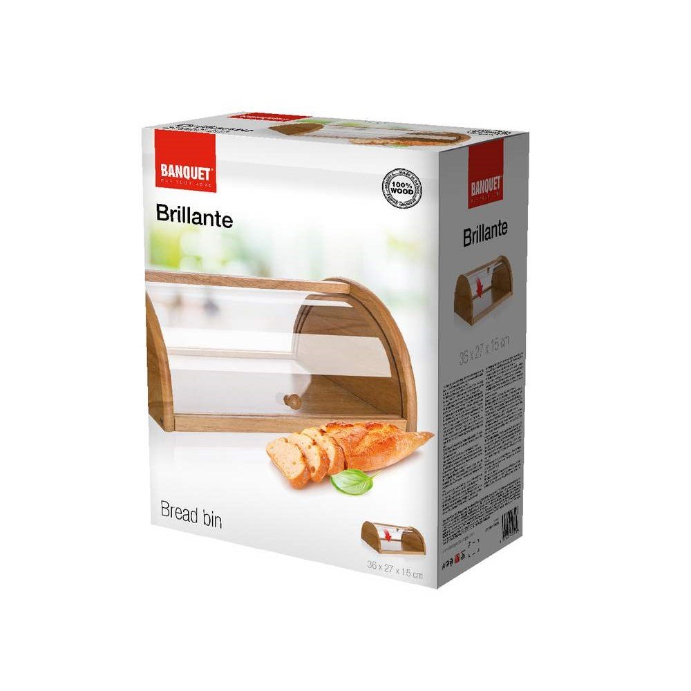 Nakoupili jste si čerstvé pečivo? Uložte ho do chlebníku Banquet Brillante. Rohlíky, chléb, housky, bagety a další pečivo tolik neosychají, jako kdybyste ho nechali venku na lince. Díky průhlednému víku z akrylátu vidíte na potraviny uvnitř. Chlebník z kvalitního gumovníkového dřeva navíc doplní vybavení vaší kuchyně.