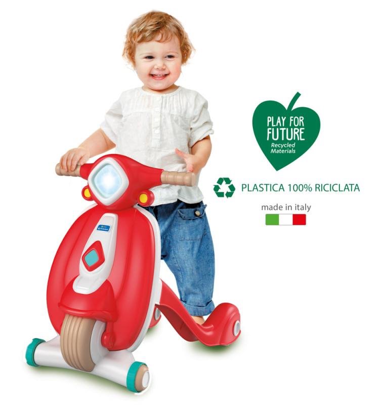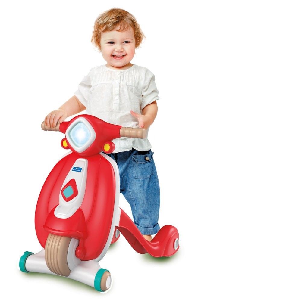 Designové Clementoni chodítko ve vintage stylu ze 100 % recyklovaného materiálu pomůže vašemu děťátku při prvních krůčcích. Chodítko ve tvaru koloběžky stimuluje rozvoj motoriky, koordinace a prostorového vnímání dětí. Chodítko obsahuje úložný prostor, kde si mohou děti uložit své malé osobní věci.