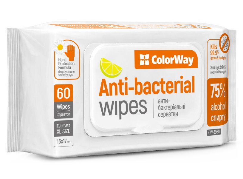 Vlhčené čisticí ubrousky s antiseptickými a antibakteriálními účinky. Speciální receptura na bázi 75% ethylalkoholu ničí až 99,9% bakterií. Díky výtažku z heřmánku chrání pokožku před suchem a podrážděním.